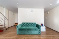 Площадь двухуровнего номера 70 м2. Номер рассчитан на 6-7 человек. Состоит из двух комнат, по одной на каждом этаже, отдельный санузел, душ, Оснащен: на 1 этаже раскладной диван, на втором 4 односпальные кровати, шкаф, письменный стол, обеденный стол со стульями, большой холодильник, два плоских ЖК телевизора диагональ 40 дюймов, чайник, сплит система, бесплатный интернет.
