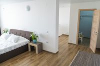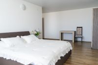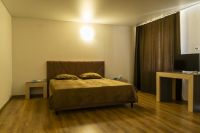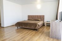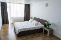 Площадь двухуровнего номера 70 м2. Номер расчитан на 6-7 человек. Состоит из двух комнат, по одной на каждом этаже, отдельный сануел, душ, Оснащен: на 1 этаже раскладной диван, на втором 4 односпальные кровати, шкаф, письменный стол, обеденный стол со стульями, большой холодильник, два плоских ЖК телевизора диагональ 40 дюймов, чайник, сплит система, бесплатный интернет. Также в стоимость номера входит: Детская площадка, детская игровая комната с аниматорами, зона барбекю, охраняемая автостоянка.
