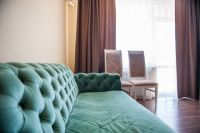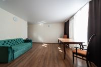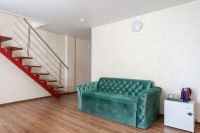 Площадь двухуровнего номера 70 м2. Номер рассчитан на 6-7 человек. Состоит из двух комнат, по одной на каждом этаже, отдельный санузел, душ, Оснащен: на 1 этаже раскладной диван, на втором 4 односпальные кровати, шкаф, письменный стол, обеденный стол со стульями, большой холодильник, два плоских ЖК телевизора диагональ 40 дюймов, чайник, сплит система, бесплатный интернет.
