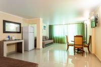 Также в стоимость номера входит: Обогреваемый бассейн, детская площадка, детская игровая комната с аниматорами, игровые приставки Сони PS4, настольный теннис, парк аттракционов, анимационные программы для детей и взрослых, вечерние шоу программы, аквааэробика в бассейне и на море, уроки танца, оздоровительные дыхательные упражнения на рассвете, и йога на закате у моря, зона барбекю, охраняемая автостоянка, шезлонги.
