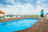 Площадь семейных номеров  42 м2. на 1 этаже  Номер расчитан на 3-4 человек.  Состоит из двух комнат, отдельный сануел, душ, Оснащен: двуспальная кровать (King size), раскладной диван, шкаф, письменный стол,  обеденный стол со стульями, большой холодильник, два плоский ЖК Телевизоров диагональ 40 дюймов, чайник, сплит система, бесплатный интернет. Также в стоимость номера входит: Детская площадка, детская игровая комната с аниматорами, зона барбекю, охраняемая автостоянка, шезлонги.