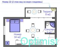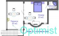Трехместный номер 40-47 м2. С террасами до 30 м2.