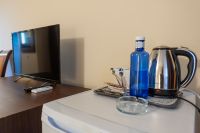 Площадь Номеров Полулюкс 35 м2 c балконом. Номер рассчитан на 3 человек c возможностью доп. места, есть санузел, гардеробная, двуспальная кровать, диван, вешалка, письменный стол, чайный столик со стульями, холодильник, плоский ЖК-телевизор диагональю 40 дюймов, чайник, сплит-система, бесплатный интернет. Также в стоимость номера входит: детская площадка, детская игровая комната с аниматорами, зона барбекю, охраняемая автостоянка, обогреваемый бассейн.