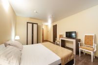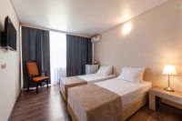 Площадь номеров стандарт 20 м2. С балконом. Номер расчитан на 2 человек с возможностью при необходимости поставить дополнительное место за оплату по тарифу . Во всех номерах есть санузел, душ, двуспальная кровать, вешалка, письменный стол, чайный столик со стульями, комплект полотенец. Телевизор диагональ 30 дюймов, сплит система, бесплатный интернет.