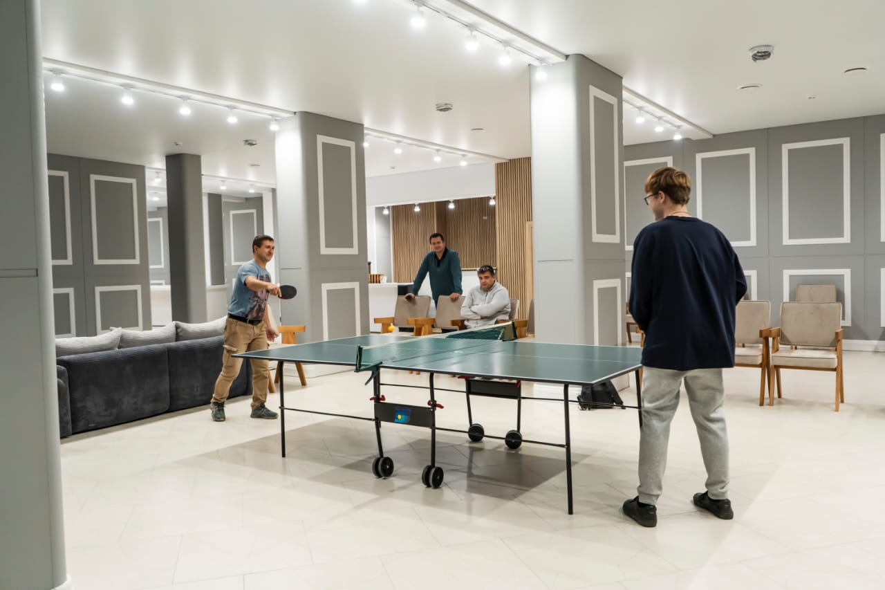 Также в стоимость номера входит: Обогреваемый бассейн, детская площадка, детская игровая комната с аниматорами, игровые приставки Сони PS4, настольный теннис, парк аттракционов, анимационные программы для детей и взрослых, вечерние шоу программы, аквааэробика в бассейне и на море, уроки танца, оздоровительные дыхательные упражнения на расцвете, и йога на закате у моря, зона барбекю, охраняемая автостоянка, шезлонги.