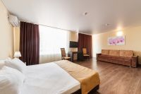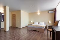 Площадь семейных номеров 35 м2. С балконом. Номер расчитан на 3 человек с возможностью при необходимости поставить дополнительное место за оплату по тарифу . Во всех номерах есть санузел, душ, двуспальная кровать (King size), вешалка, шкаф, раскладывающийся диван, письменный стол, чайный столик со стульями, холодильник, комплект полотенецт, телевизор диагональ 40 дюймов, чайник, сплит система, бесплатный интернет. Также в стоимость номера входит: Детская площадка, детская игровая комната с аниматорами, зона барбекю, охраняемая автостоянка, шезлонги, настольный теннис.